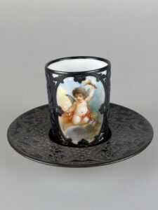 Šálek s podšálkem zdobený miniaturou