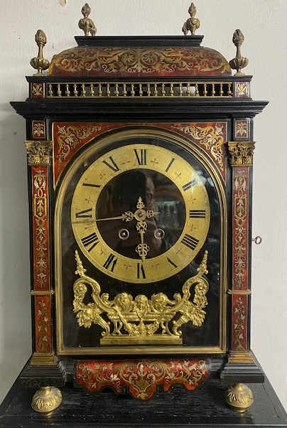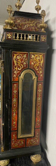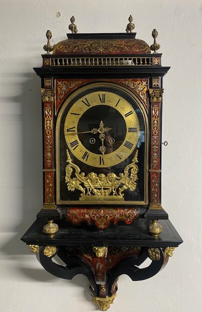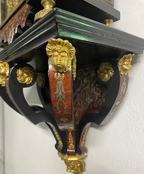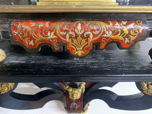 Boullové hodiny s konzolí bohatě zdobené a vykládané,celkový rozměr s konzolí 95*41*20 hodiny 33*60*16 a konzole 41*35*20