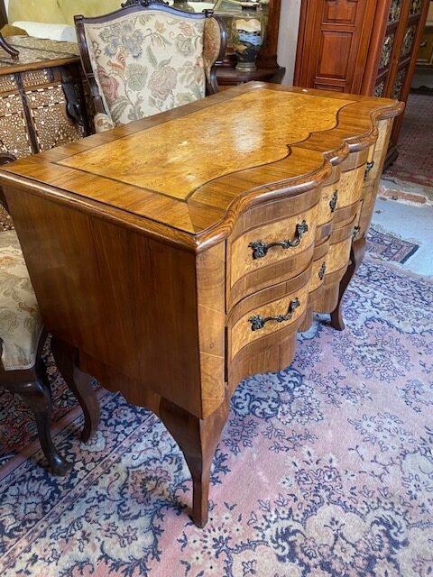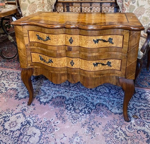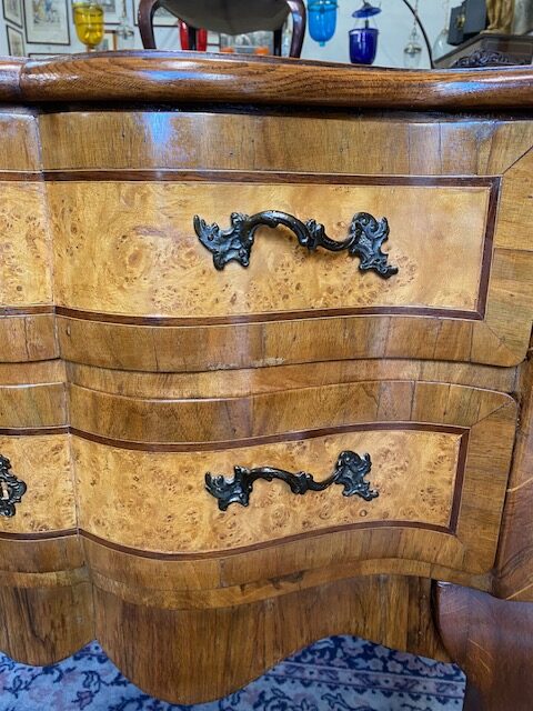 Dvoušuplíková komoda zdobená kořenicovou dýhou a bronzovým kováním 96*83*51