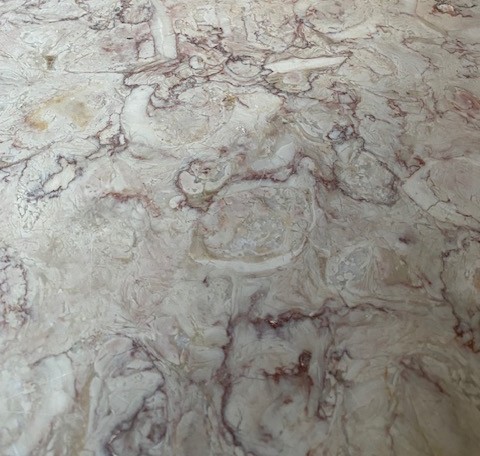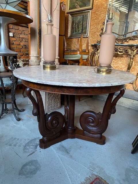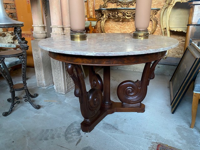 Jídelní stůl kulatý se zdobenou trnoží a mramorovou deskou 125*80.