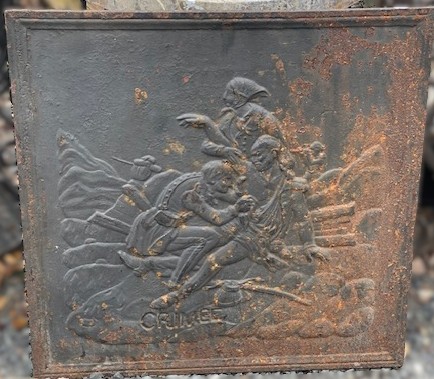 Litinová deska E 71*71cm do krbu  stav viz foto
