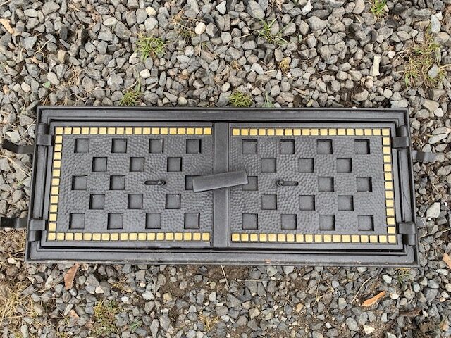 Litinová dvířka zdobená 2ks větší 57*82 menší 57*23 uvedená cena za 2ks.