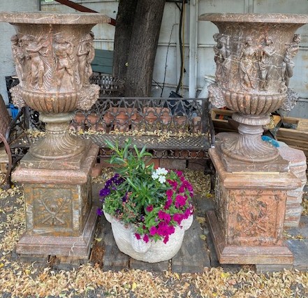 Mramorové párové vázy A 50*160*50 cm zdobené figurálními motivy