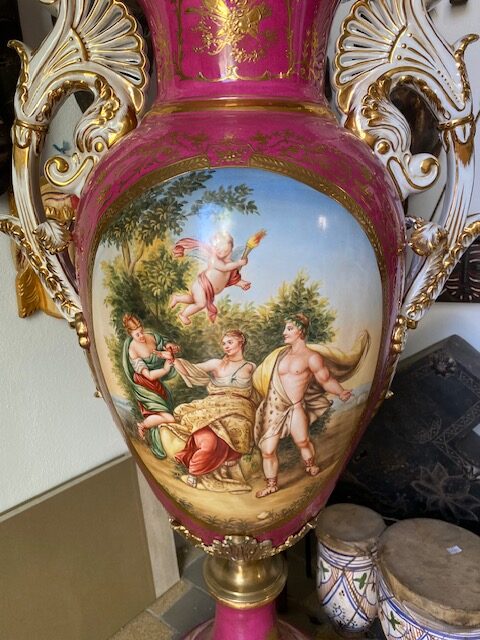 Porcelánová váza s figurálními motivy 65*130*35 bohatě zdobená,možnost páru,bronzové doplnky značena viz foto.