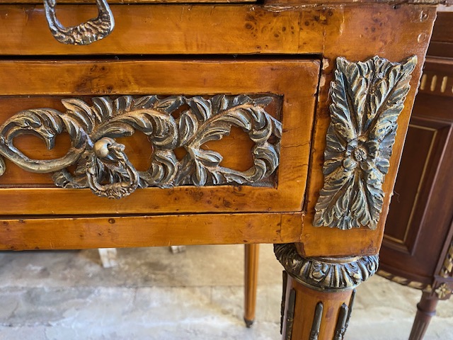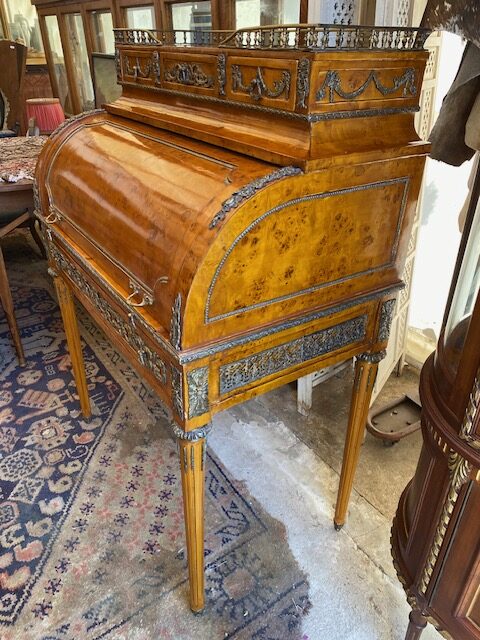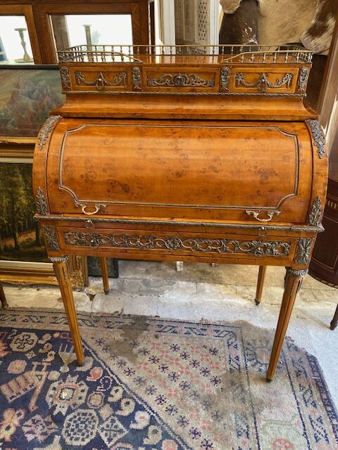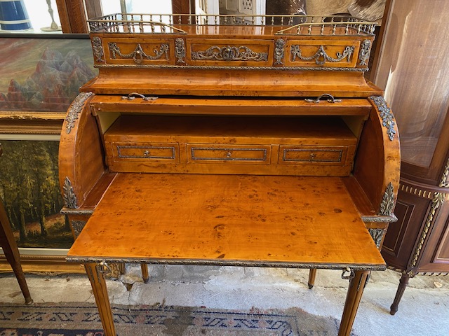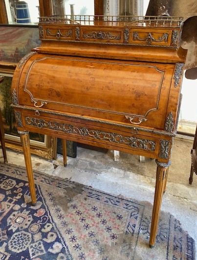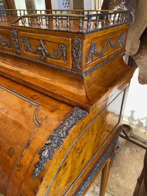 Psací stůl s roletou bohatě zdobený bronzovými doplnky 92*130*55