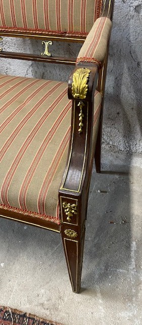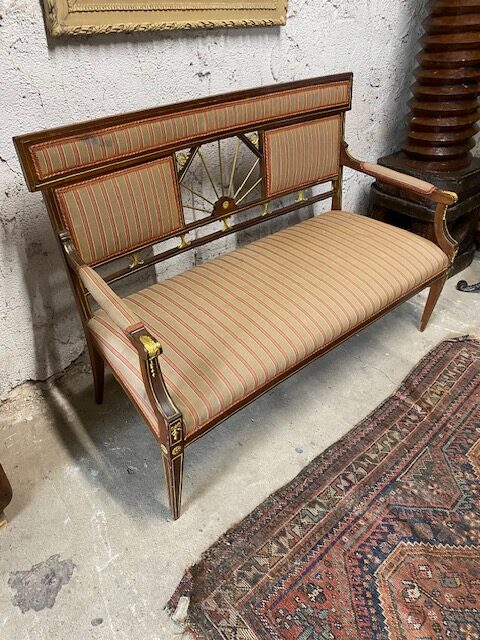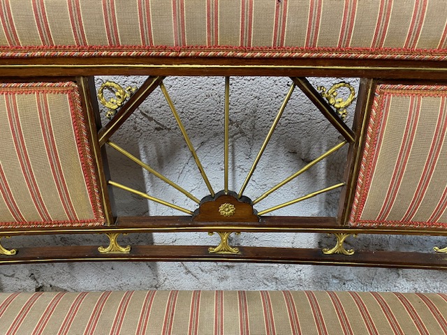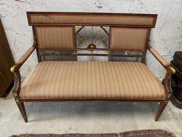 Sofa s područkami bohatě zdobená mosaznými doplnky 130*90*54