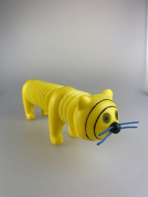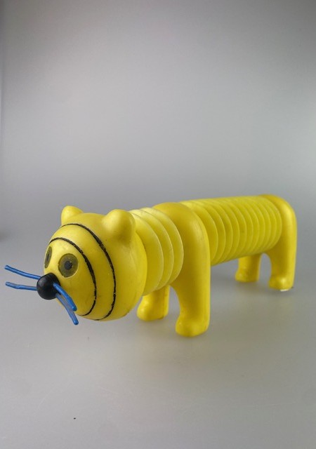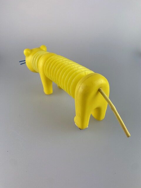 Barevný plast, dětská hračka s varhánkovitým trupem, délka 31 cm, firemní zn. „F“, čs. patent č. 115236. Legendární hračka známé české designérky Libuše Niklové (1934-1981).